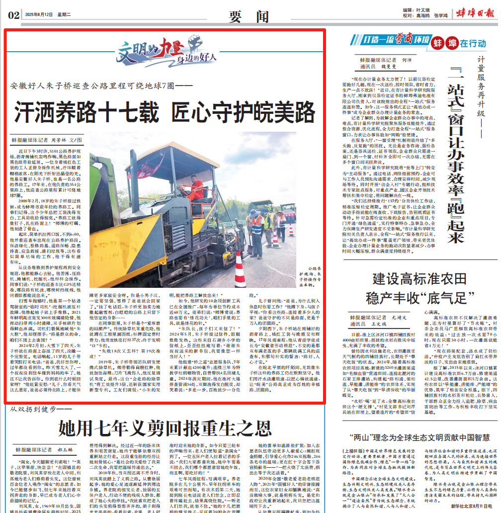 在皖北平原的阡陌間,無數(shù)像朱子橋這樣的養(yǎng)路工仍在默默堅(jiān)守。他們用汗水澆灌坦途,以匠心鑄就通途,讓“皖美”公路真正成為百姓的幸福路、團(tuán)圓路。