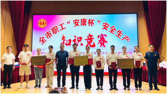 7月15日下午,2025年全市職工“安康杯”安全生產(chǎn)知識(shí)競(jìng)賽圓滿收官。此次競(jìng)賽由市總工會(huì)、市應(yīng)急管理局、市衛(wèi)生健康委員會(huì)以及市消防救援支隊(duì)共同主辦。賽事組織嚴(yán)謹(jǐn),分為初賽、預(yù)賽和決賽三個(gè)階段層層推進(jìn),初賽階段由各單位自行組織選拔,經(jīng)內(nèi)部嚴(yán)格遴選組建精干隊(duì)伍代表集團(tuán)出戰(zhàn)。在激烈競(jìng)爭(zhēng)中,市國(guó)控集團(tuán)代表隊(duì)?wèi){借深厚安全知識(shí)積淀、高度團(tuán)隊(duì)協(xié)作默契以及卓越臨場(chǎng)應(yīng)變能力,歷經(jīng)多輪比拼,從20支參賽隊(duì)伍里脫穎而出,一舉奪得團(tuán)體二等獎(jiǎng),史健健、尉婷花、劉麗妹三位同志榮獲“優(yōu)勝選手獎(jiǎng)”,充分彰顯了國(guó)控集團(tuán)干部職工優(yōu)秀的安全素養(yǎng)與積極向上的精神風(fēng)貌。